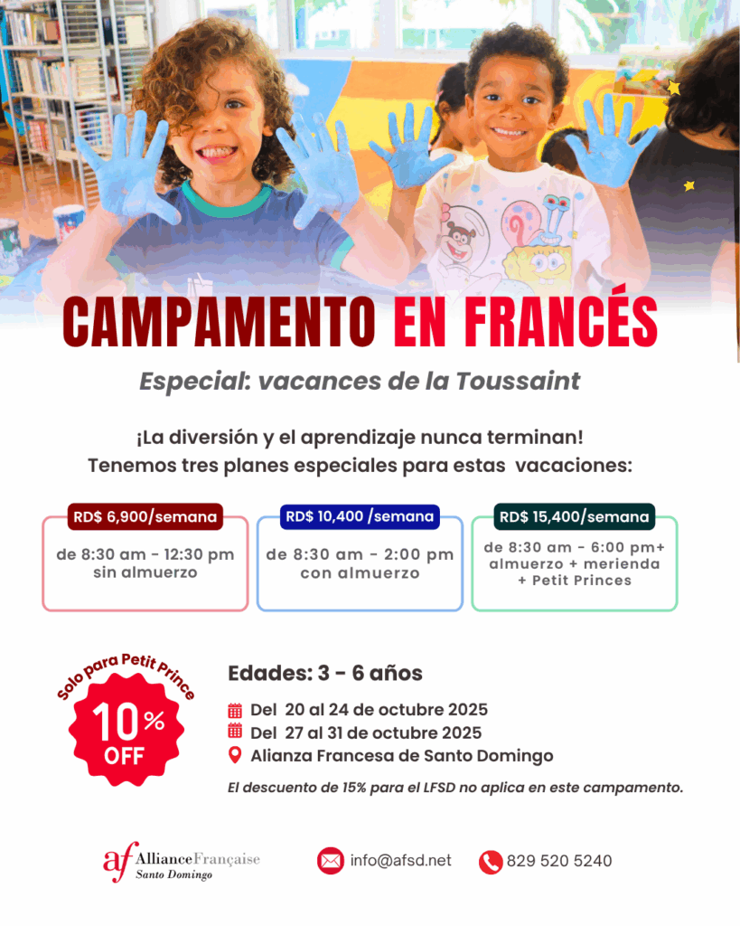 Nuestros campamentos están dirigidos por profesionales de la lengua francesa, quienes están comprometidos a brindar una experiencia educativa de calidad en un ambiente seguro y acogedor. ¡Únete a nosotros y sumérgete en la cultura y el idioma francés mientras creas recuerdos inolvidables!