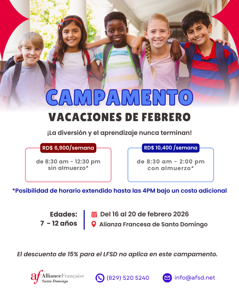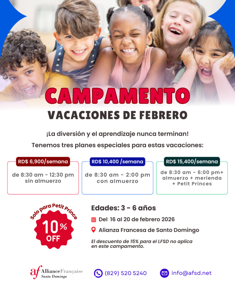 Nuestros campamentos están dirigidos por profesionales de la lengua francesa, quienes están comprometidos a brindar una experiencia educativa de calidad en un ambiente seguro y acogedor. ¡Únete a nosotros y sumérgete en la cultura y el idioma francés mientras creas recuerdos inolvidables!