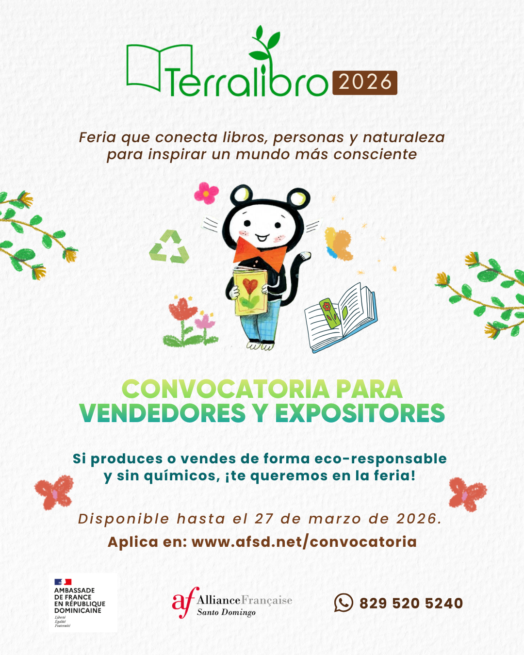 Forma parte de Terralibro 2026, la feria de la Alianza Francesa de Santo Domingo dedicada a productos saludables, orgánicos y de elaboración local. Invitamos a productores, artesanos y organizaciones comprometidas con el bienestar y el cuidado del medioambiente a sumarse a este espacio de intercambio responsable.