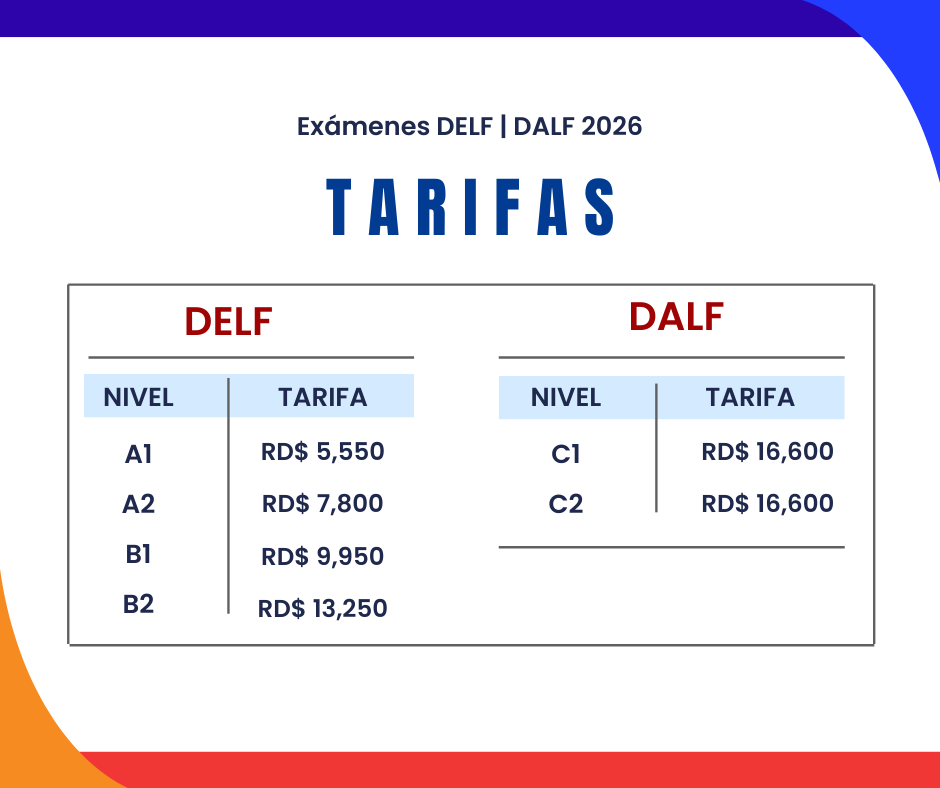 La Alianza Francesa es el único centro de exámenes oficiales en francés autorizado en República Dominicana por el Ministerio de educación en Francia. Disponible en la Alianza Francesa de Santo Domingo y Santiago
