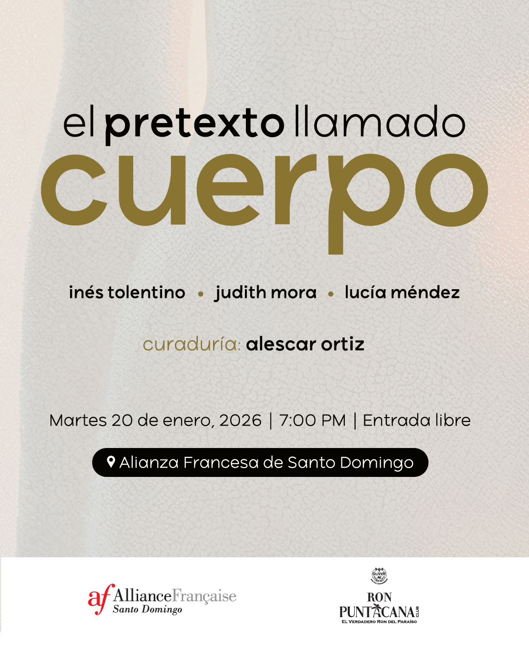 La Alianza Francesa de Santo Domingo presenta El pretexto llamado cuerpo, un proyecto expositivo que propone una reflexión profunda y colectiva sobre el cuerpo como territorio simbólico, espacio de memoria y vehículo de expresión.